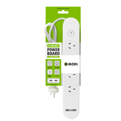 Moki Powerboard - 4 Socket + 2 USB-A + 1 Switch